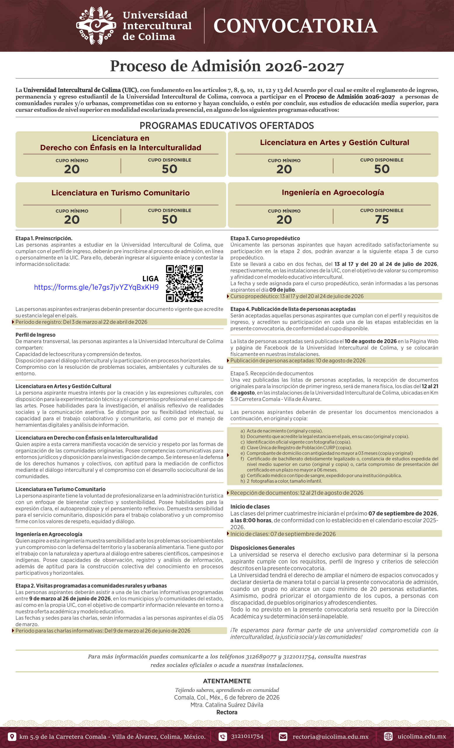 Convocatorias Feria del Libro de la Universidad Intercultural de Colima 2025Convocatoria Admisión UIC 2025Convocatoria Docente en Agroecología 2025Convocatoria Docente en Artes 2025Convocatoria Docente en Derecho 2025Convocatoria Docente en Turismo 2025Convocatoria de Admisión 2026 Interculturalidad CríticaVer Documento